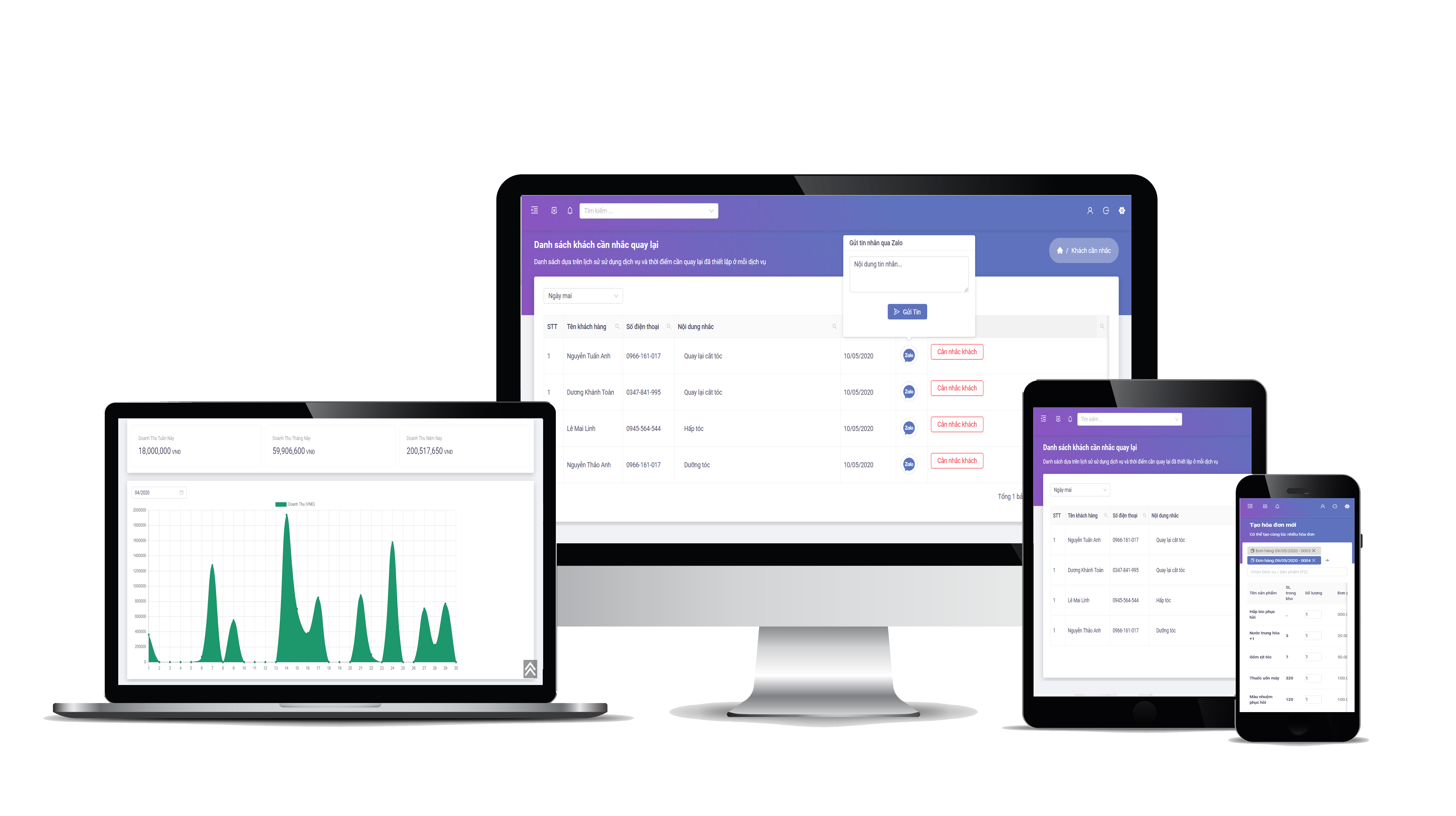 Chức năng nhắc khách khi đến lịch cần quay lại cửa hàng để sử dụng dịch vụ định kỳ bằng tin nhắn Zalo, Facebook giúp gia tăng mối quan hệ giữa cửa hàng và khách mang lại cho khách hàng cảm giác được chăm sóc chu đáo và chuyên nghiệp. Cũng nhờ vậy bạn sẽ tối ưu và tăng doanh số cửa hàng.